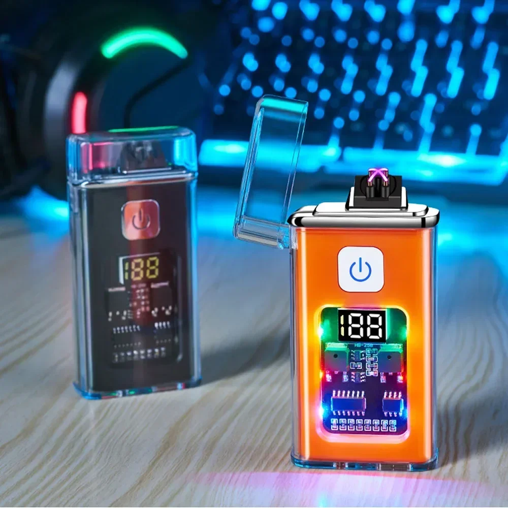 Stylish USB Rechargeable Electric Lighter Cool Windproof Dual ARC Plasma Lighters For Men Outdoor Camping Gadgets Fire Starter