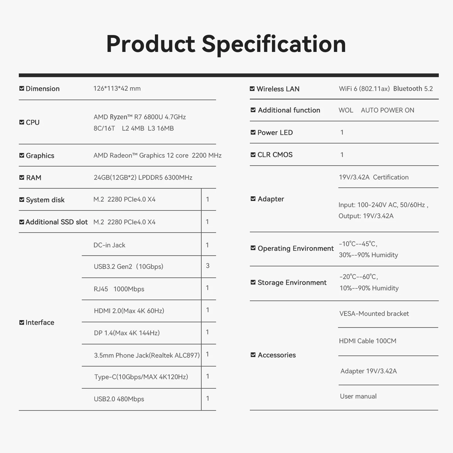 Processor Model: AMD Ryzen 5 5500U/Ryzen 7 6800U