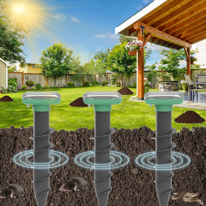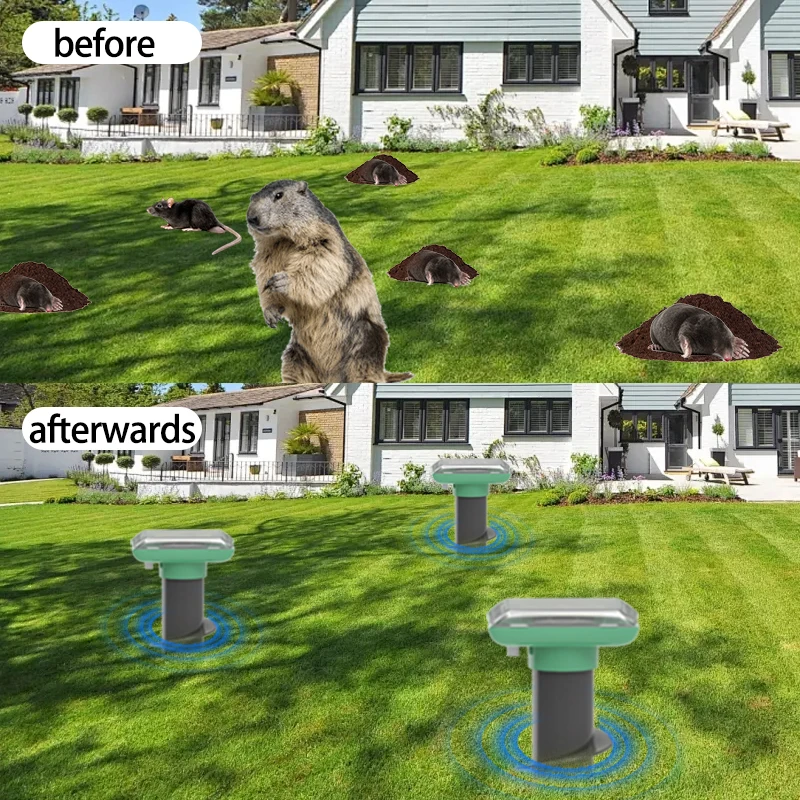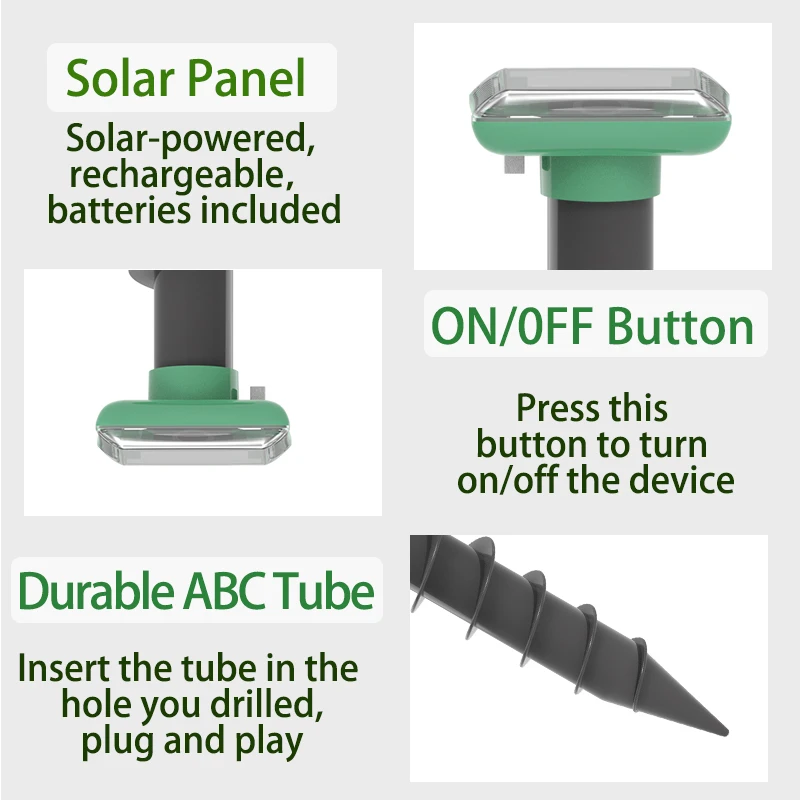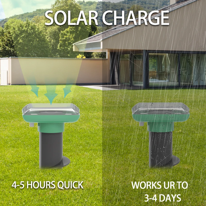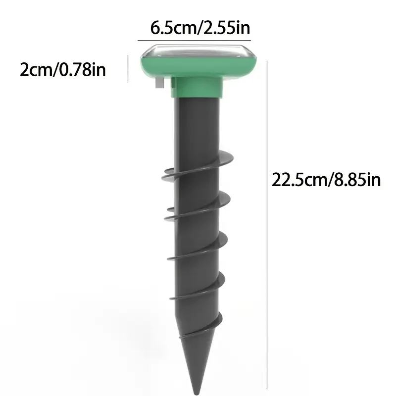 The solar rat repellent works outdoors 24 hours a day to effectively repel moles and snakes