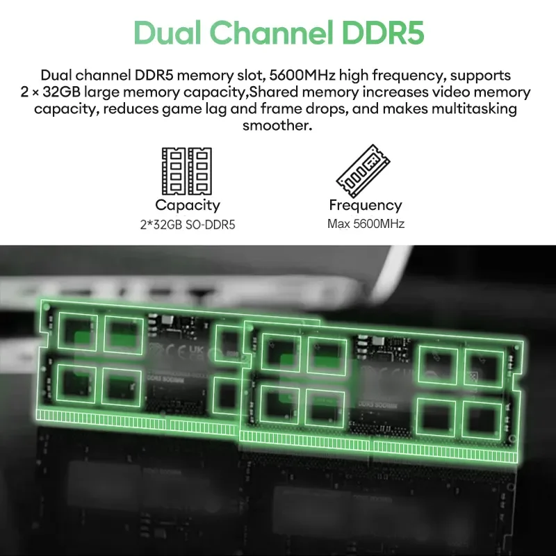 Ram: 2 x SO-DIMM DDR5 slots, 5600MHz(Ryzen 9 8945HS/7940HS, Ryzen 7 8845HS/8745HS/7840HS, Ryzen 5 7640HS), 4800MHz(Ryzen 9 6900HX, Ryzen 7 6800H)