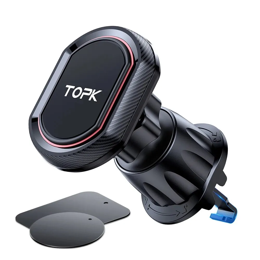 👍LOCK YOUR PHONE FIRMLY: TOPK Magnetic Phone Car Mount with 4 built-in strong magnets, the maximum bearing up to weight of 4 cellphones. Powerful suction keep your cellphone stay stably even when drive on a bumpy road. PLEASE NOTE:1. It is recommend that use the “square pad” on the back of your phone/case. It is more stable than the round. 2. ANY DEVICE NEEDS TO USE THE METAL PALTE EVEN iPhone 12 and iPhone13 and iPhone 14 iPhone 15.
