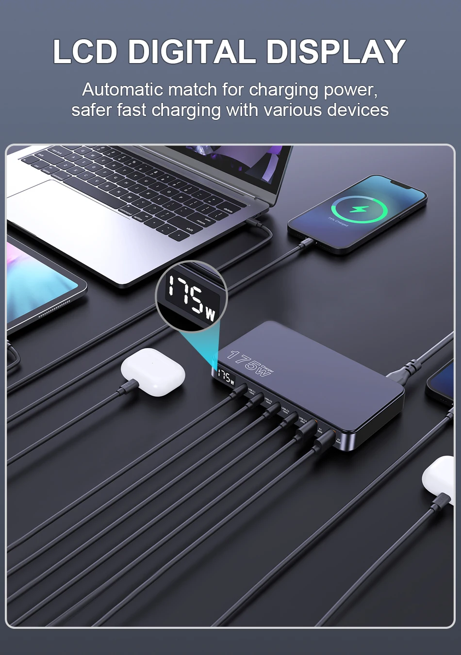 Whether in the office, at home, or during travel, our 175W desktop charger can meet the charging needs of your device.
