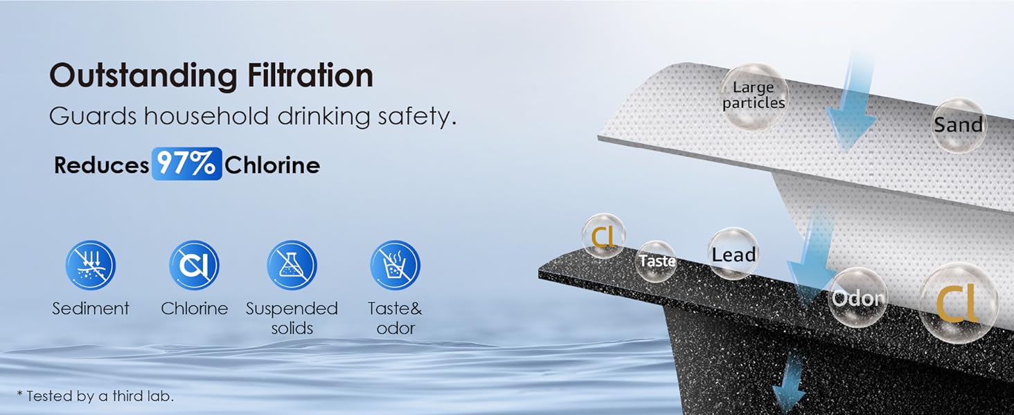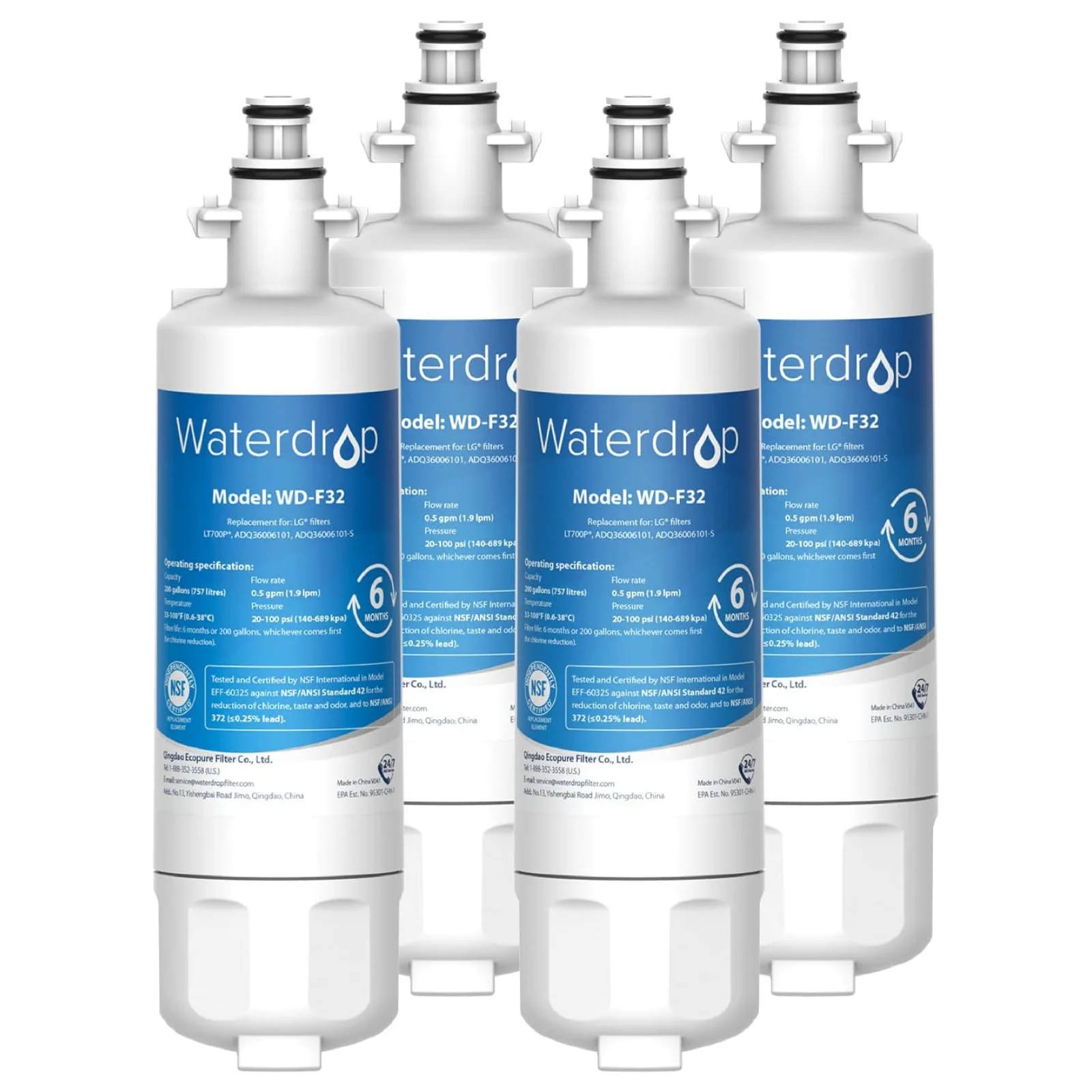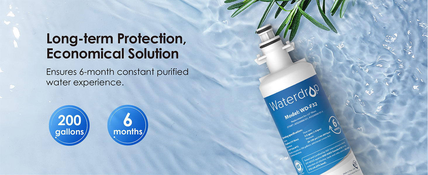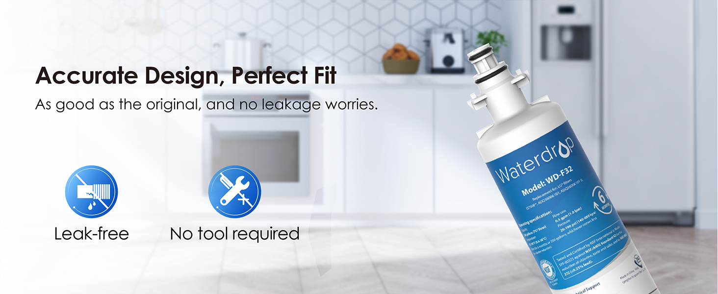 Waterdrop WD-F32 filters are certified as system to NSF 42 for the reduction of Chlorine, Taste and Odor.