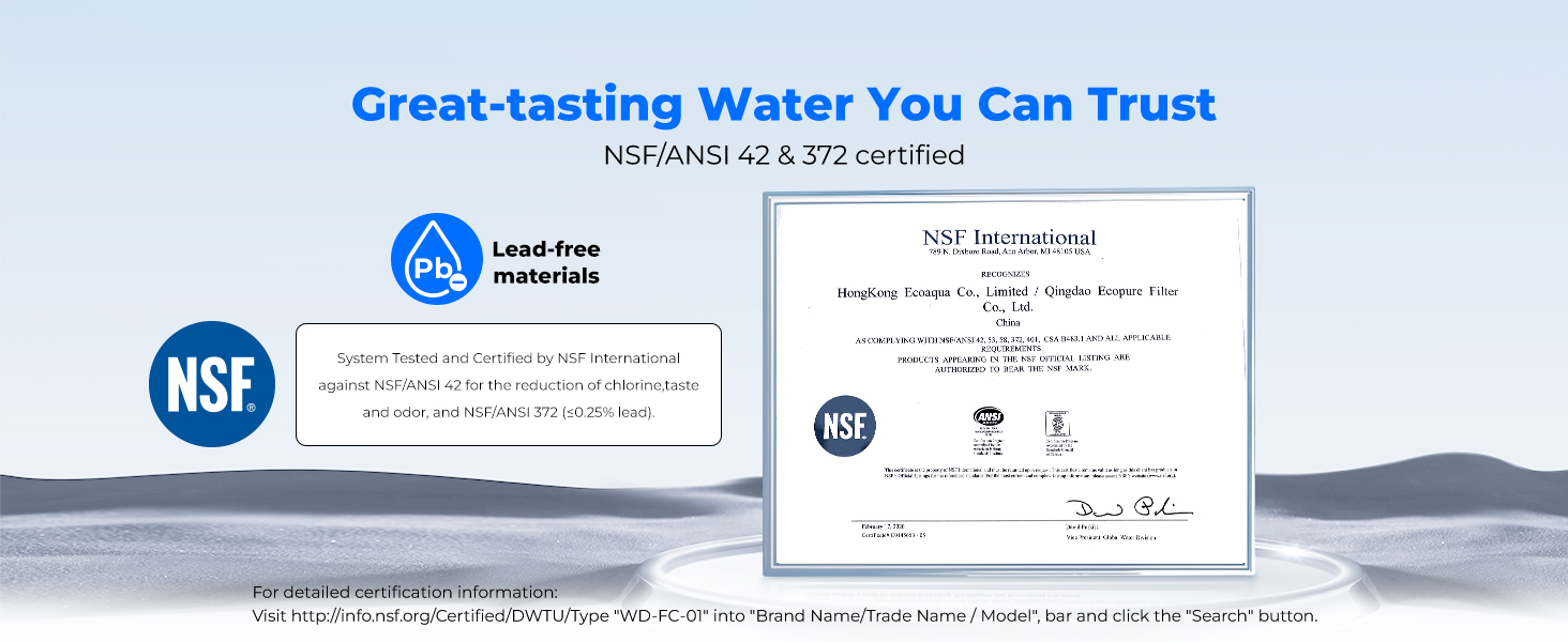 NSF certifications: Tested and certified by NSF International against NSF/ANSI standard 42 for the reduction of chlorine, taste and odor, and to NSF/ANSI 372 for lead-free material. Provides you with safer and healthier water. Please Note: This system DOES NOT lower TDS value. If you want to decrease the TDS value, please choose Waterdrop RO system.