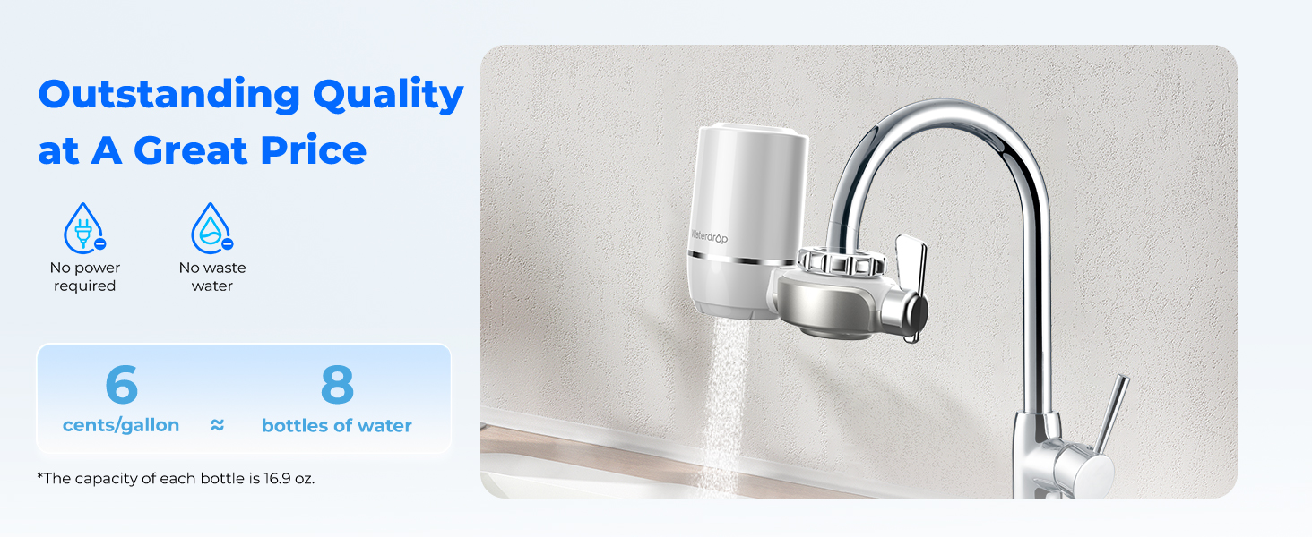 Longer filter life: Each faucet filter provides 320 gallons of cleaner water, or 3 months of typical use – that’s 2x longer than most faucet filters. 3-pack replacement filters are available for purchase! (Search "WD-FF-01A")