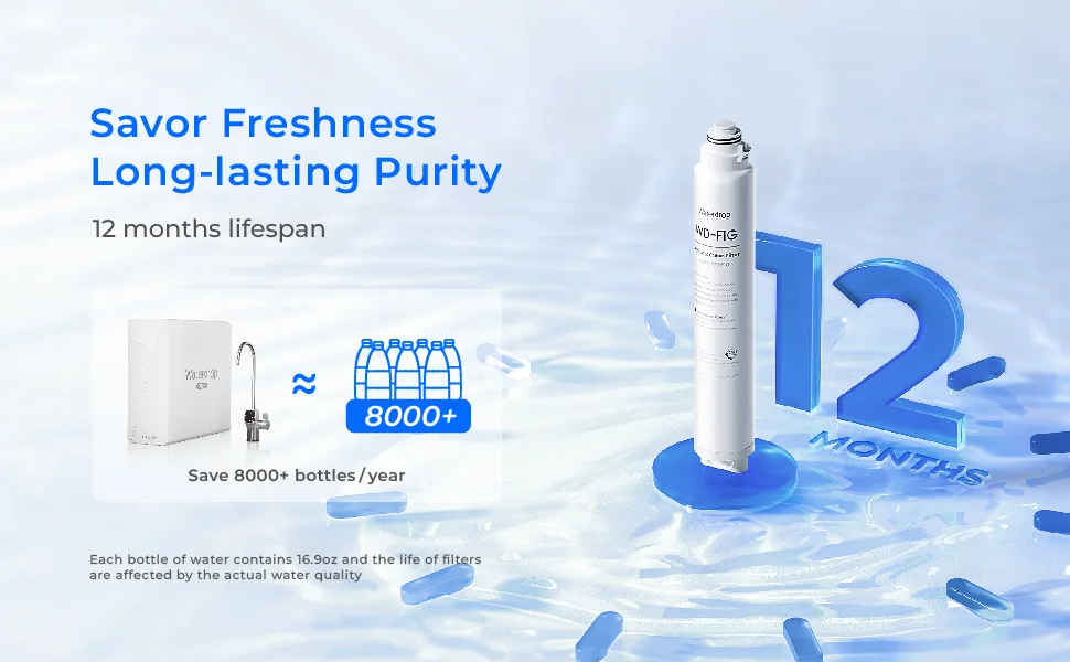 Waterdrop WD-F1G Filter, Replacement for WD-X12-Basic & WD-X8-Basic & WD-X8-PRO Reverse Osmosis System, 12-month Lifetime