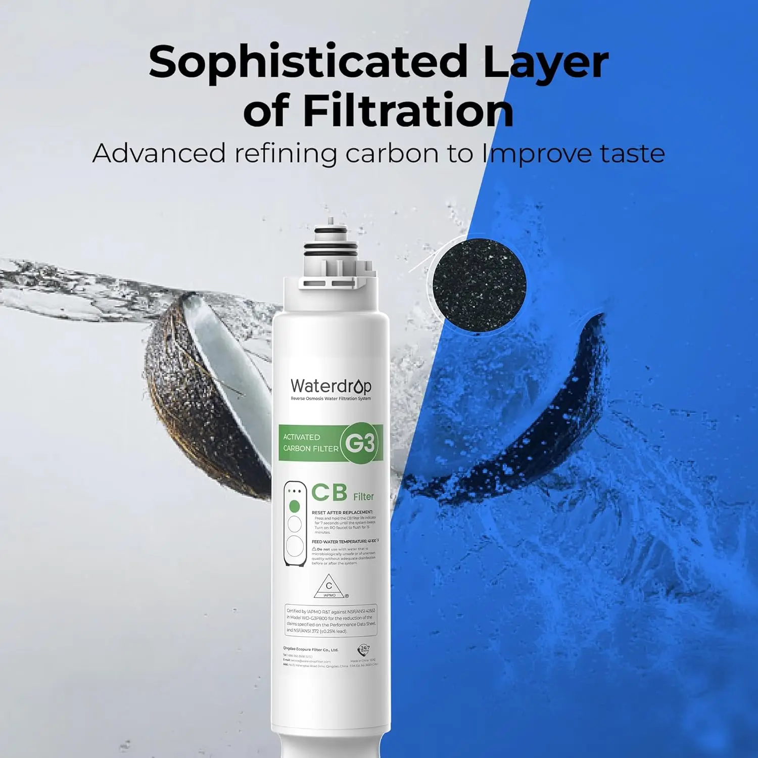 𝐏𝐫𝐞𝐦𝐢𝐮𝐦 𝐦𝐚𝐭𝐞𝐫𝐢𝐚𝐥: This filter boasts a superior coconut shell-activated carbon block with a smaller pore size, which largely adsorbs residual chlorine odor and organics, improving the water’s taste. The activated carbon block is made from natural coconut shells .Please confirm whether you are allergic to it .
