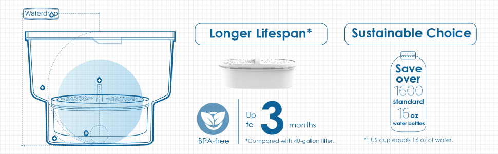 New version: This Waterdrop water filter matches with All Waterdrop Pitcher Filtration System. It adopts advanced technologies and new designs to realize comprehensive upgrades and escalating functions.