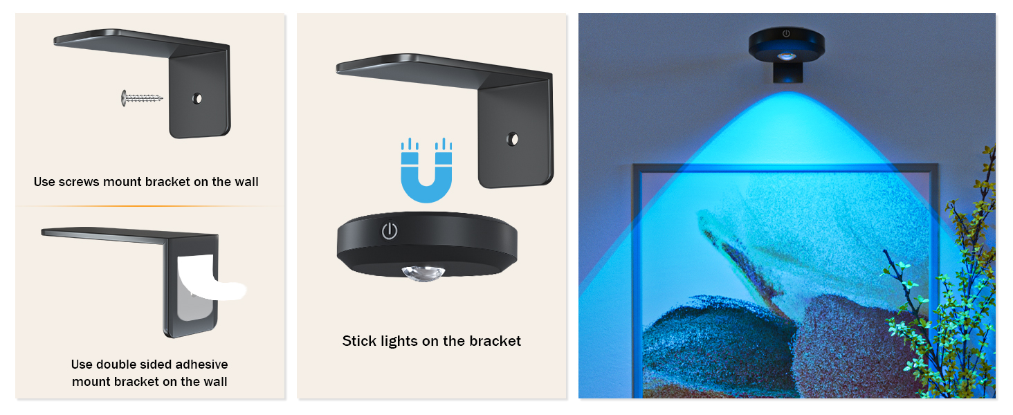 Various application for wall, picture, art paintings, closet,under counter, wardrobe, under cabinet, basement, cupboard, bookshelf, etc.