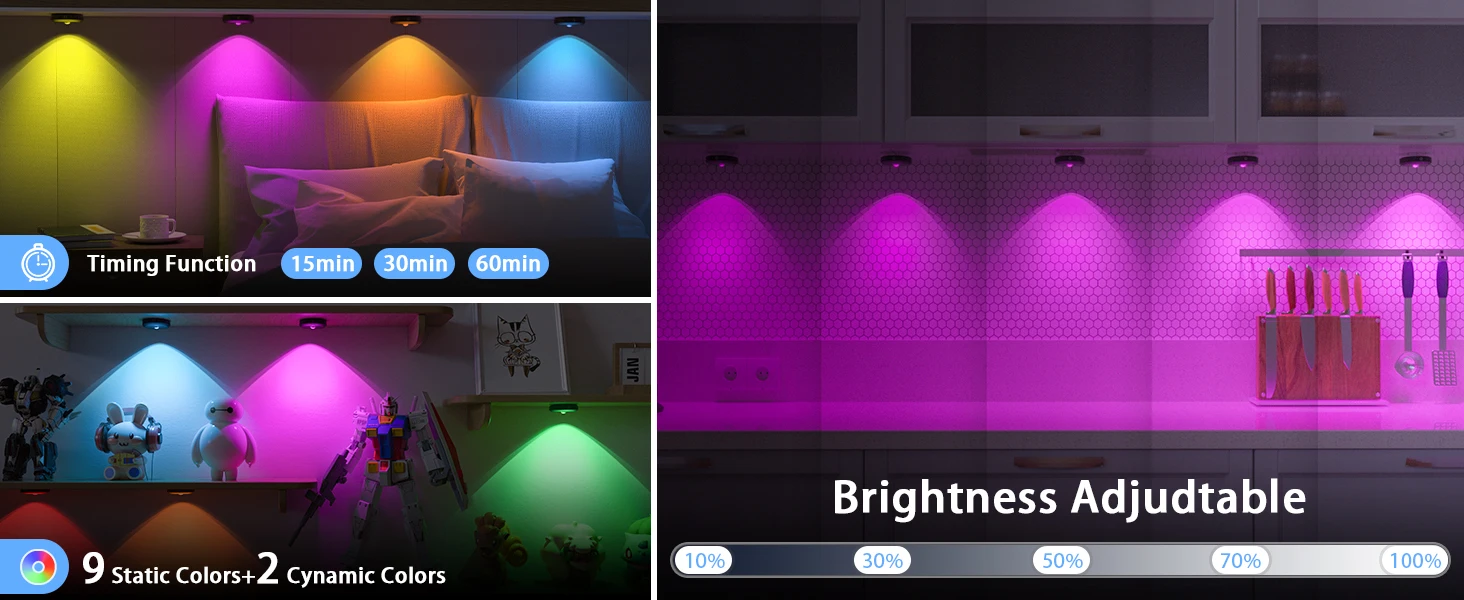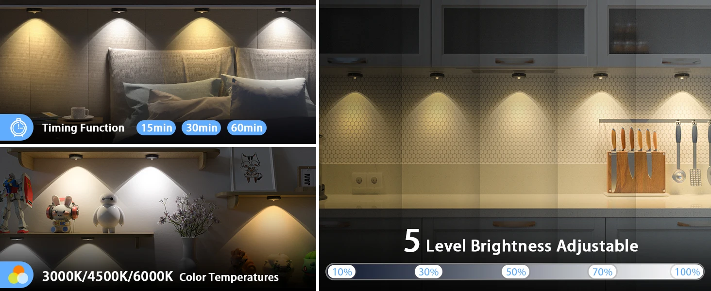 · The stick on puck lights with extra adhesive magnet iron sheet, easy to take off from the extra iron sheet for charging and convenient for multiple installations.