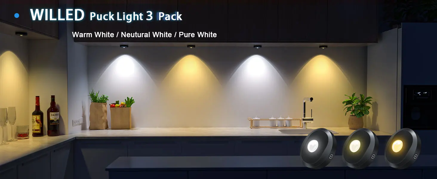 WILLED Night Light 3pcs with Remote 1200mAh Rechargeable Puck light with Timer Stick on Picture Lights for Wall Closet Cabinet