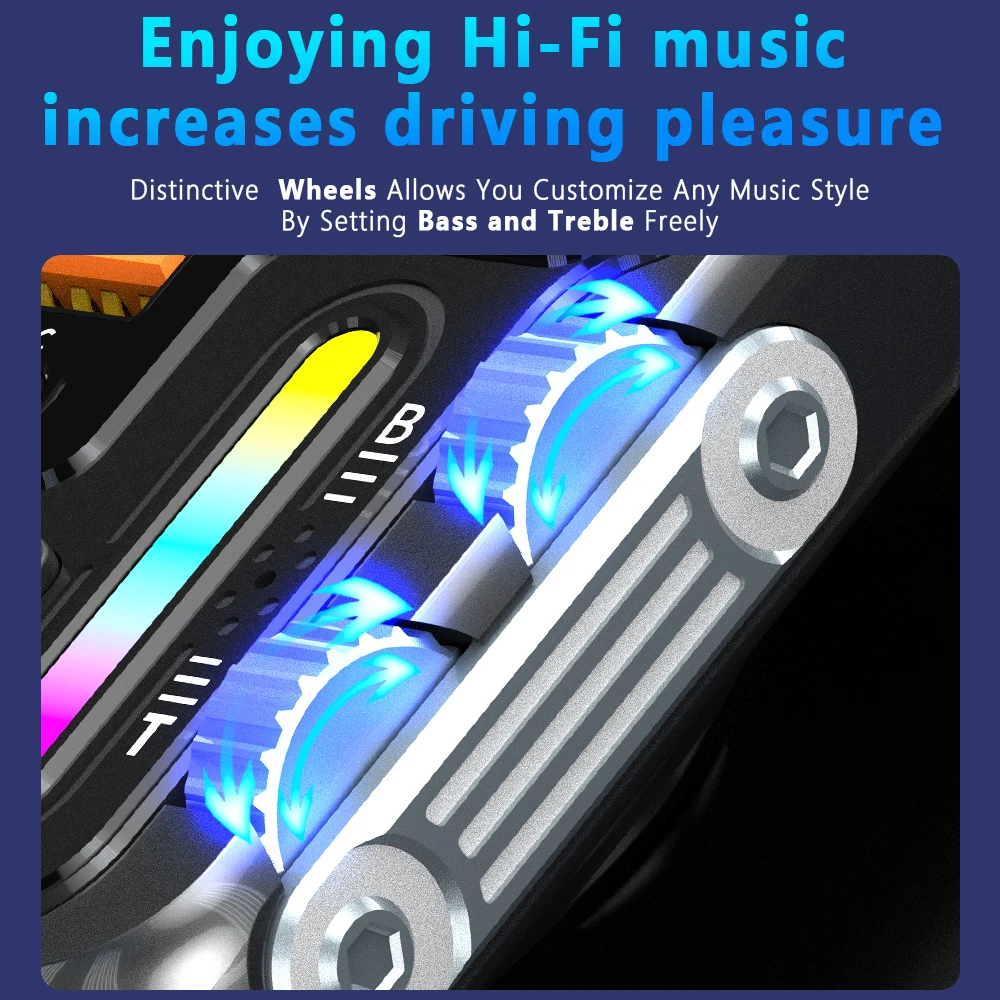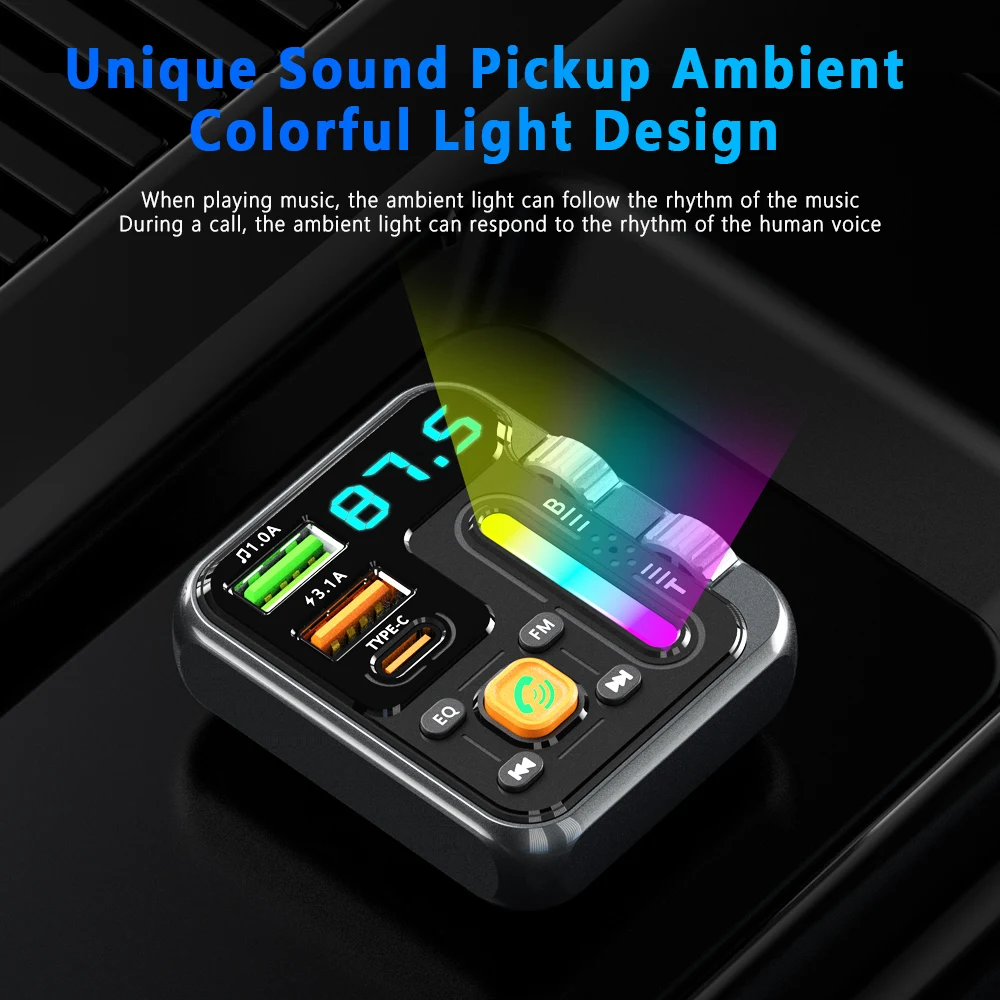 Wireless Car Bluetooth MP3 Player Car FM Transmitter Hi-Fi Audio and Music Light Bar Double Roller Design Car Charger