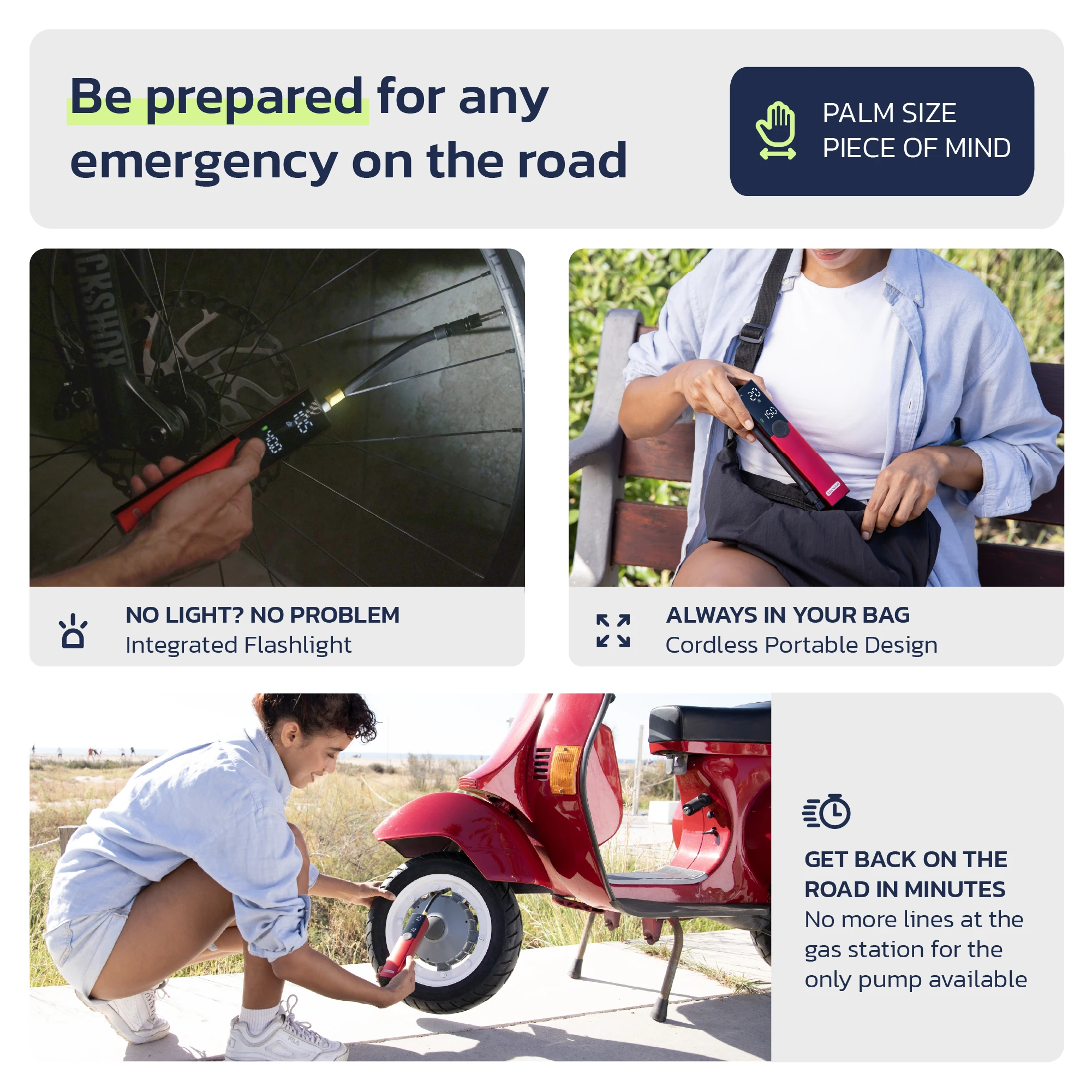 Ultimate Versatility: up to 150 PS, the BP188 tire inflator can inflate a variety of tires, including car, road bikes, mountain bikes, dirt bikes, motorcycles, scooters, and even swimming rings and basketballs