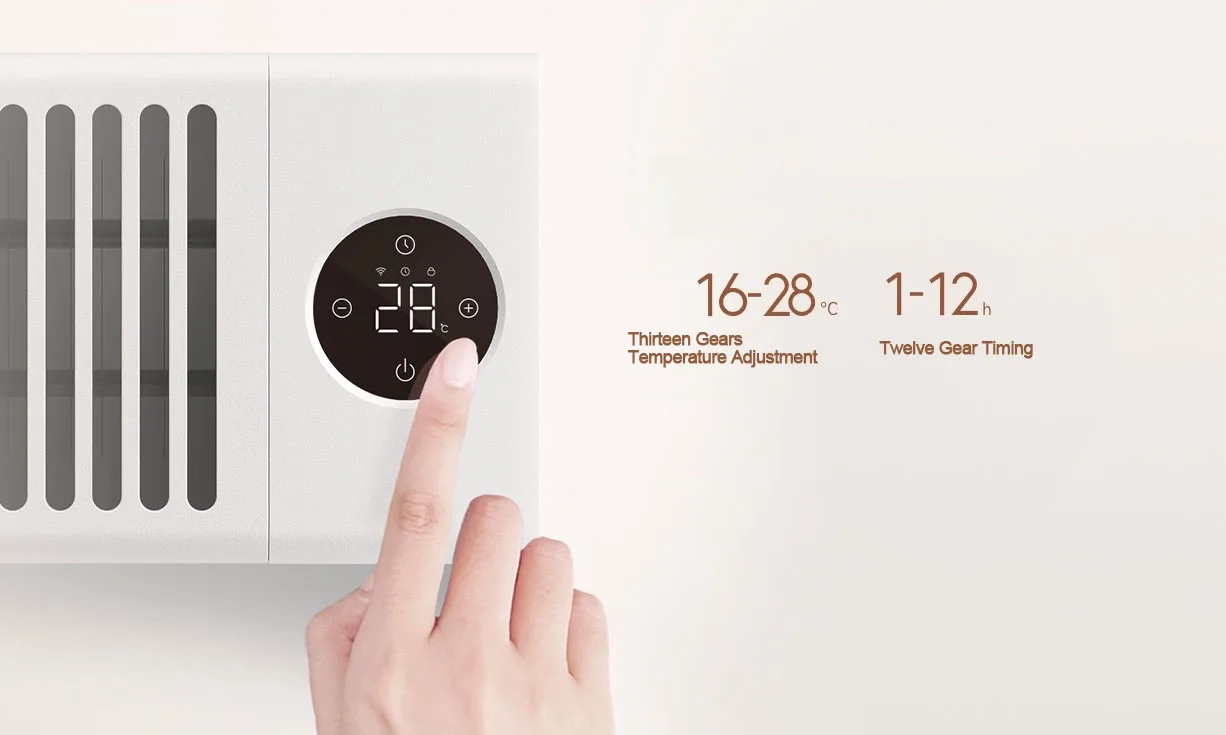 The LED display and touch buttons allow you to set the target temperature directly. 13 levels of temperature adjustment from 16-28°C and 12 timing settings from 1-12 hours.