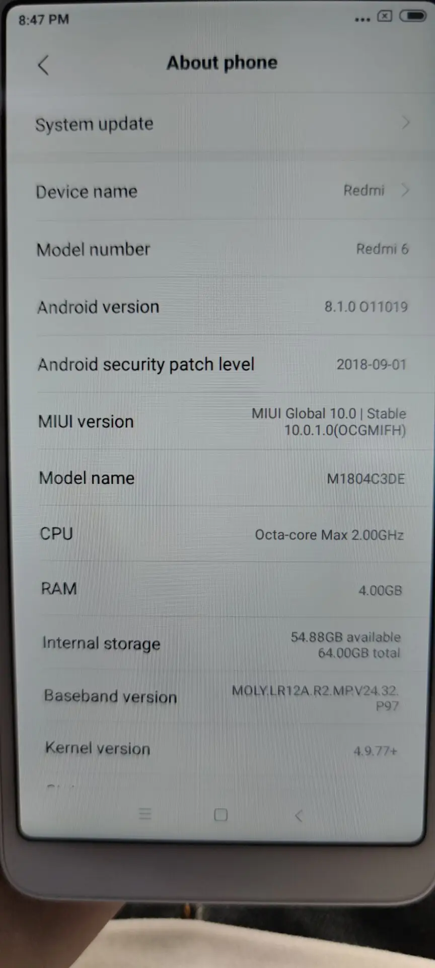 Xiaomi Model: Redmi 6