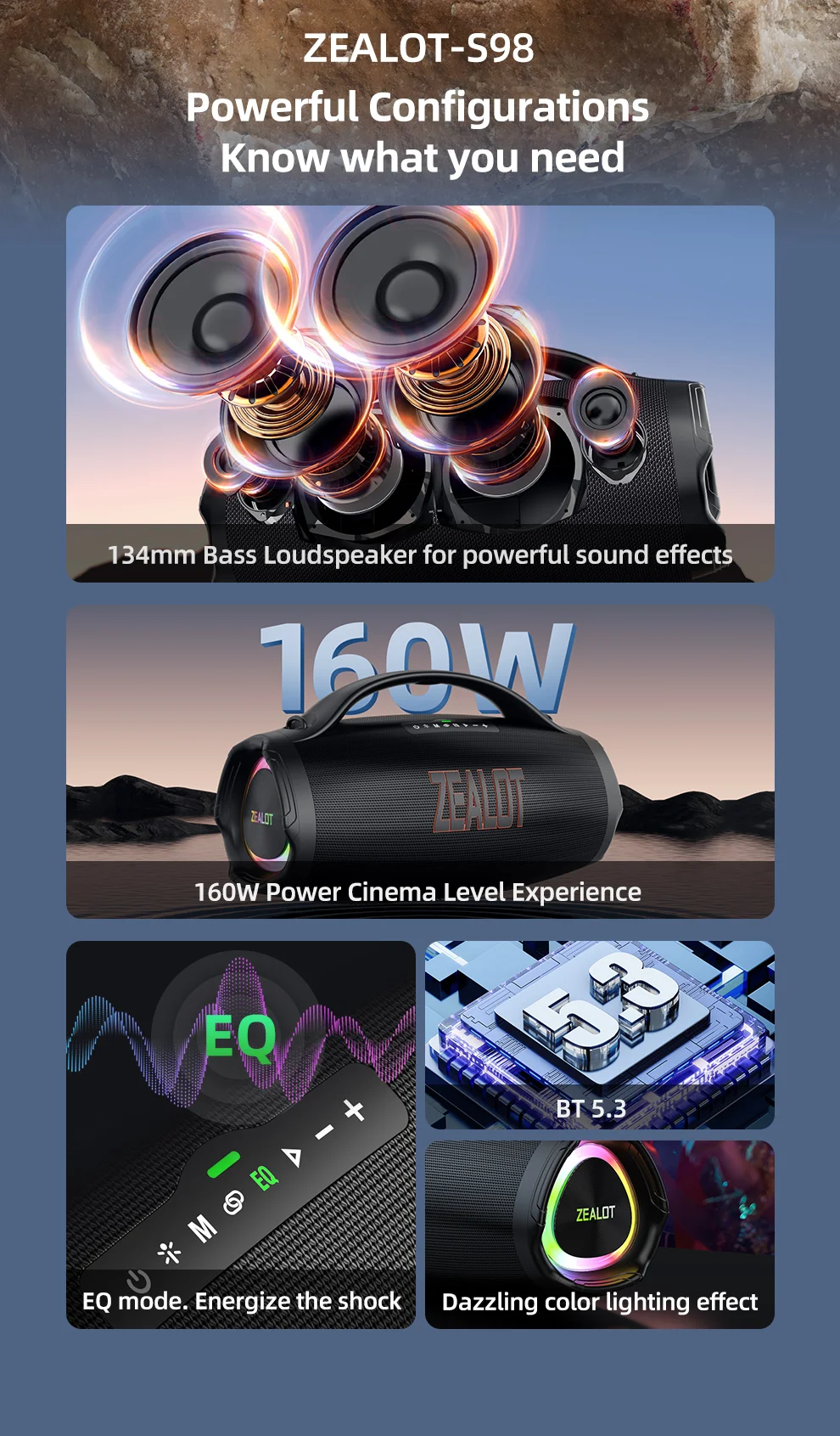 The S98 is equipped with a 134mm full range driver with a total output power of 160W (root mean square), specifically tuned for music, making bass clearer and more transparent.